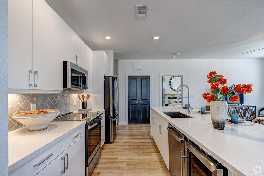 This 2-bedroom, 2-bath apartment offers seamless indoor/outdoor living with elevated design and lifestyle perks. Take advantage of co-working spaces with private huddle rooms, a chef-quality catering kitchen, a dog park, and an oversized pool with shaded cabanas—perfect for relaxation or remote workdays.