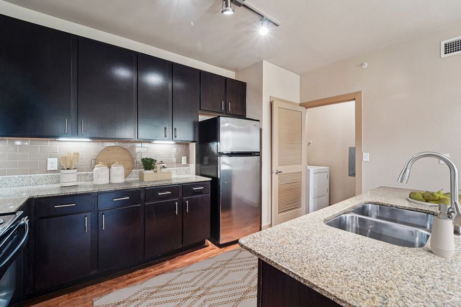 Inside, enjoy wood-style flooring, a bright living area, a fully equipped kitchen with modern appliances and plenty of cabinet space, generous walk-in closets, and in-unit washer/dryer connections. Select units feature private patios or balconies for outdoor relaxation.